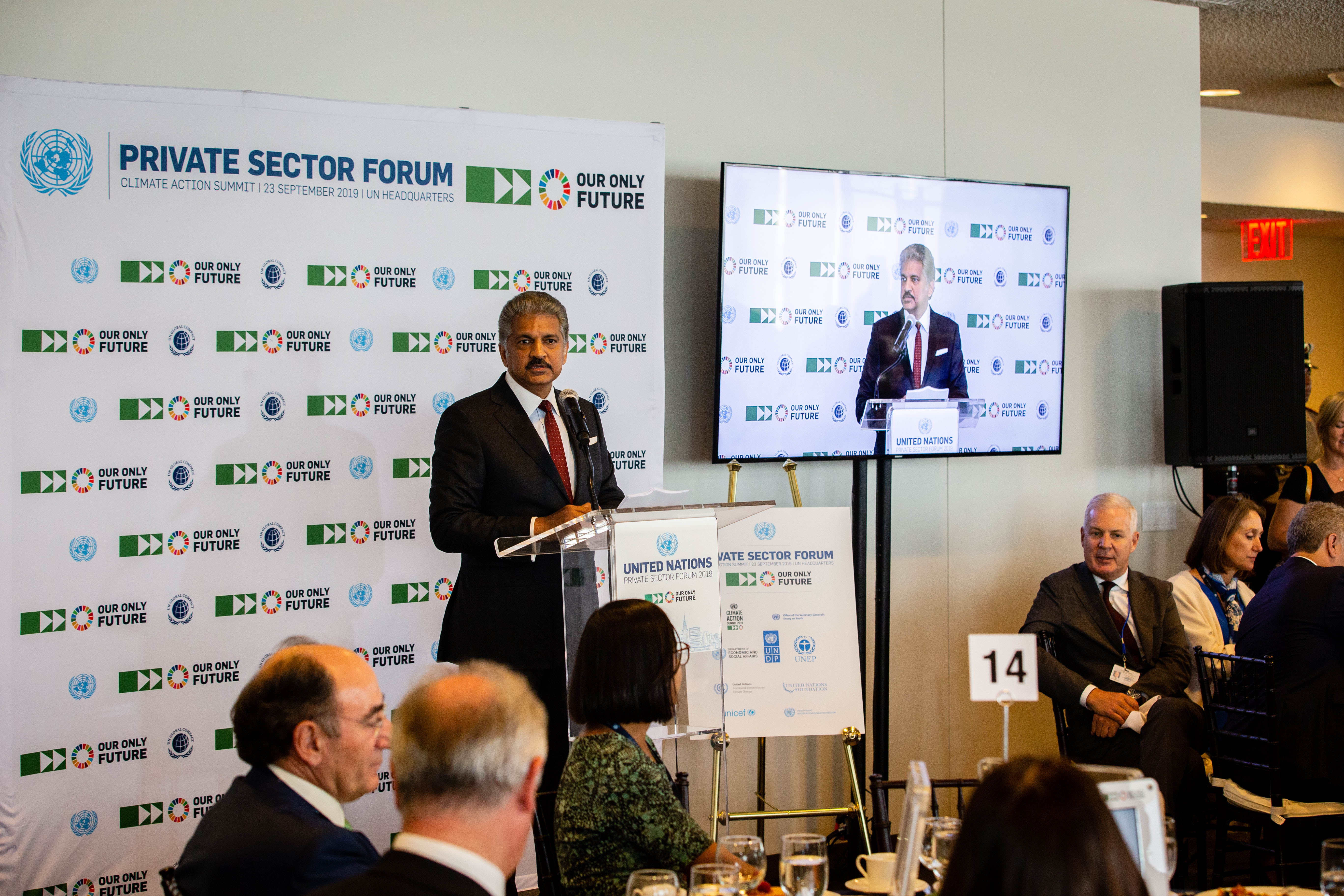 Mr. Anand Mahindra, UN Global Compact Board Member and Chairman of Mahindra Group, at the Private Sector Forum 2019.